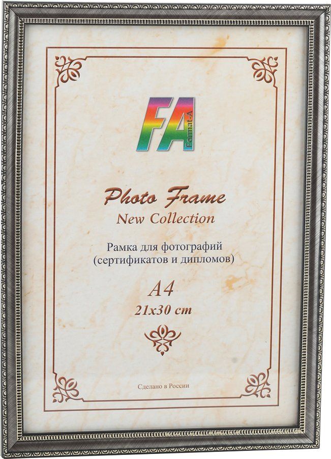 Фоторамка пластиковая , размер фотографии 21х30 ,картонный задник , лепестки - крепления , крючек для подвеса на стену.