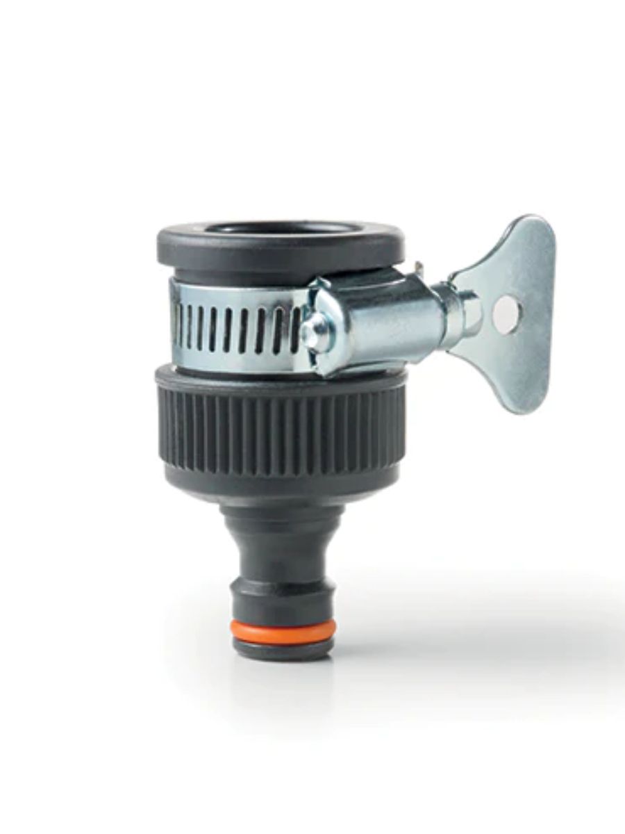 Для подсоединения штуцера шланга к безрезьбовым кранам. С металлическим зажимом в виде бабочки для безопасного применения.