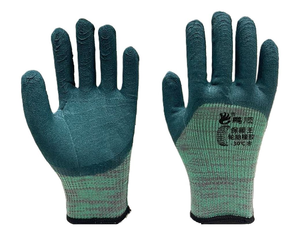 Акриловые перчатки с двойным рифленым латексным покрытием, утепленные, до -30, зеленые 1/10/480