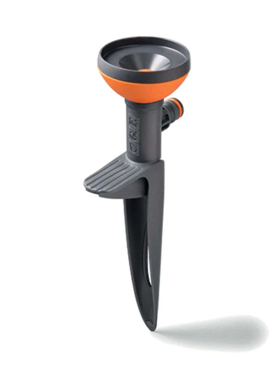 Статический распылитель для небольших площадей и там, где требуется очень мягкая распыляемая струя. Версия на колышке. Максимальная скорость потока 23 л/мин.