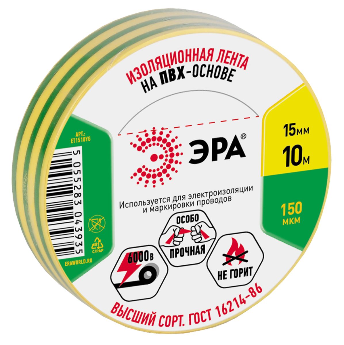 Читать все статьиИзолента ЭРА ET1510YG ПВХ 15мм х 10м желто-зеленая