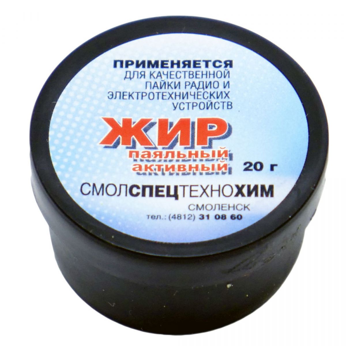 Состоит из канифоли и стеарина. Жир нейтральный используется для снятия сильно окисленной оболочки с поверхности металлических деталей, для лучшего их скрепления при пайке. Он идеально подходит для работы с черными и цветными металлами. Фасуется в пластиковые баночки. Масса нетто: 20гр. Упакован по 10шт