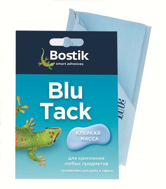 Bostik Blu Tack (Бостик Блю Так) — клейкая масса для крепления различных предметов. Легко удаляется, не оставляет следов. Позволяет прикреплять и удерживать множество предметов, не делая дырок ни на поверхности, ни на прикрепляемом материале. Идеально подходит для: прикрепления плакатов, рисунков; фотографий, декоративных материалов, презентаций, карт, сообщений и т.д. удерживания на месте и крепления телефона и счетной машинки к столу, колонок к полу, горшков, различных предметов к полкам и т.д. создания и крепления частей макетов; подходит для крепления к любым поверхностям: виниловые обои, окрашенные поверхности, дерево, стекло, металл, пластмасса, фарфор и т.д.
