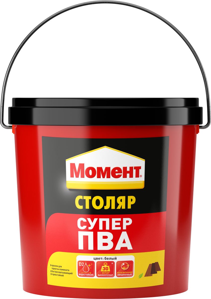 Момент Супер ПВА D2 является идеальным решением для склеивания всех пород дерева, ламината и изделий, изготовленных из материалов на основе древесины (ДСП, ДВП, МДФ и др). Водостойкий клей, идеально подходящий для паркета и ламината. - Водостойкость D2 - Высокопрочный - Прозрачный после высыхания - Быстросхватывающий