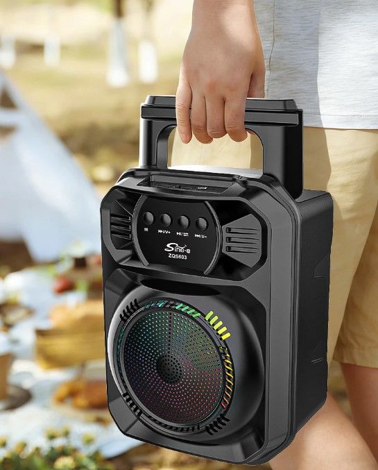 Мобильность: Сверхмощный динамик с ручкой для переноски на корпусе, легко носить с собой, максимальное наслаждение музыкой.