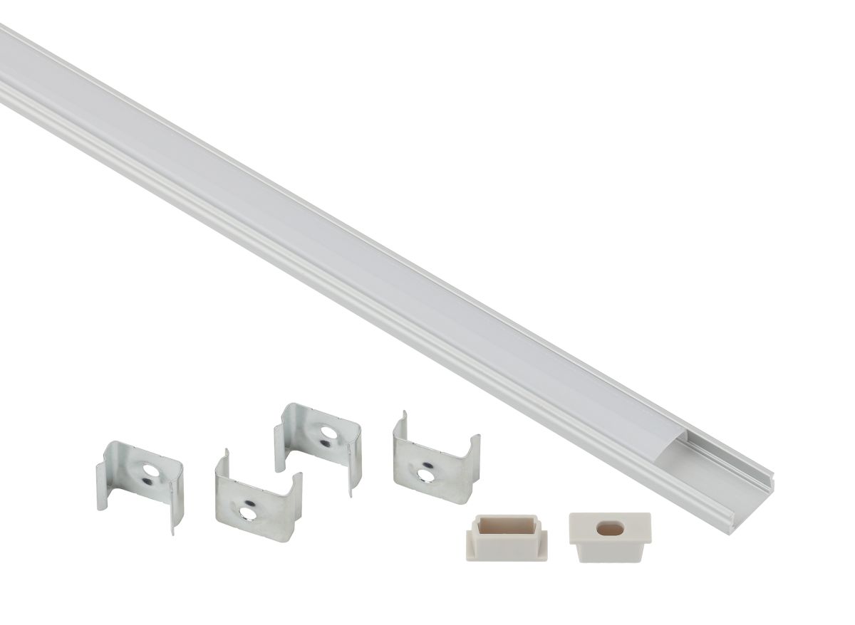 Комплект накладного алюминиевого профиля предназначен для установки светодиодных лент с шириной подложки до 10 мм. За счёт отведения тепла увеличивает срок службы светодиодной ленты. Анодированное покрытие обеспечивает устоичивость к воздействиям окружающей среды и легко окрашивается. Эстетично смотрится в интерьере, обеспечивает механическую защиту. В комплекте накладной алюминиевый профиль САВ262 15х6 мм, 2 м, белый матовый экран из поликарбоната 2 м, 4 крепления и 2 заглушки.