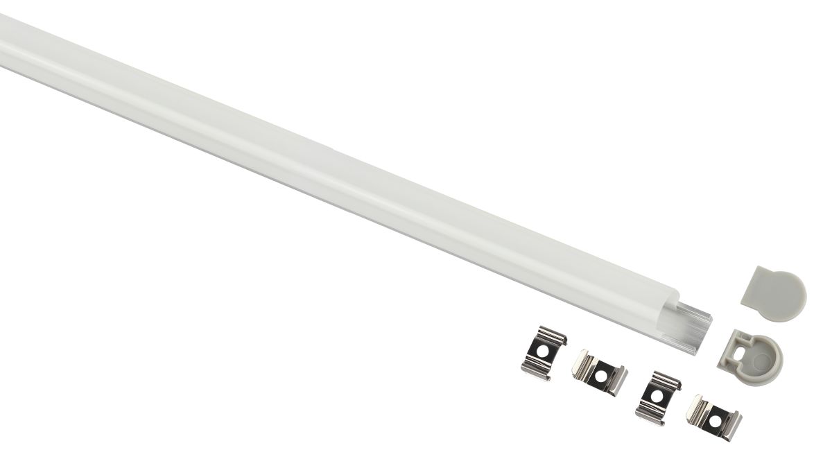 алюминиевый 2 м, белый матовый экран из поликарбоната 2 м, 4 крепления и 2 заглушки.