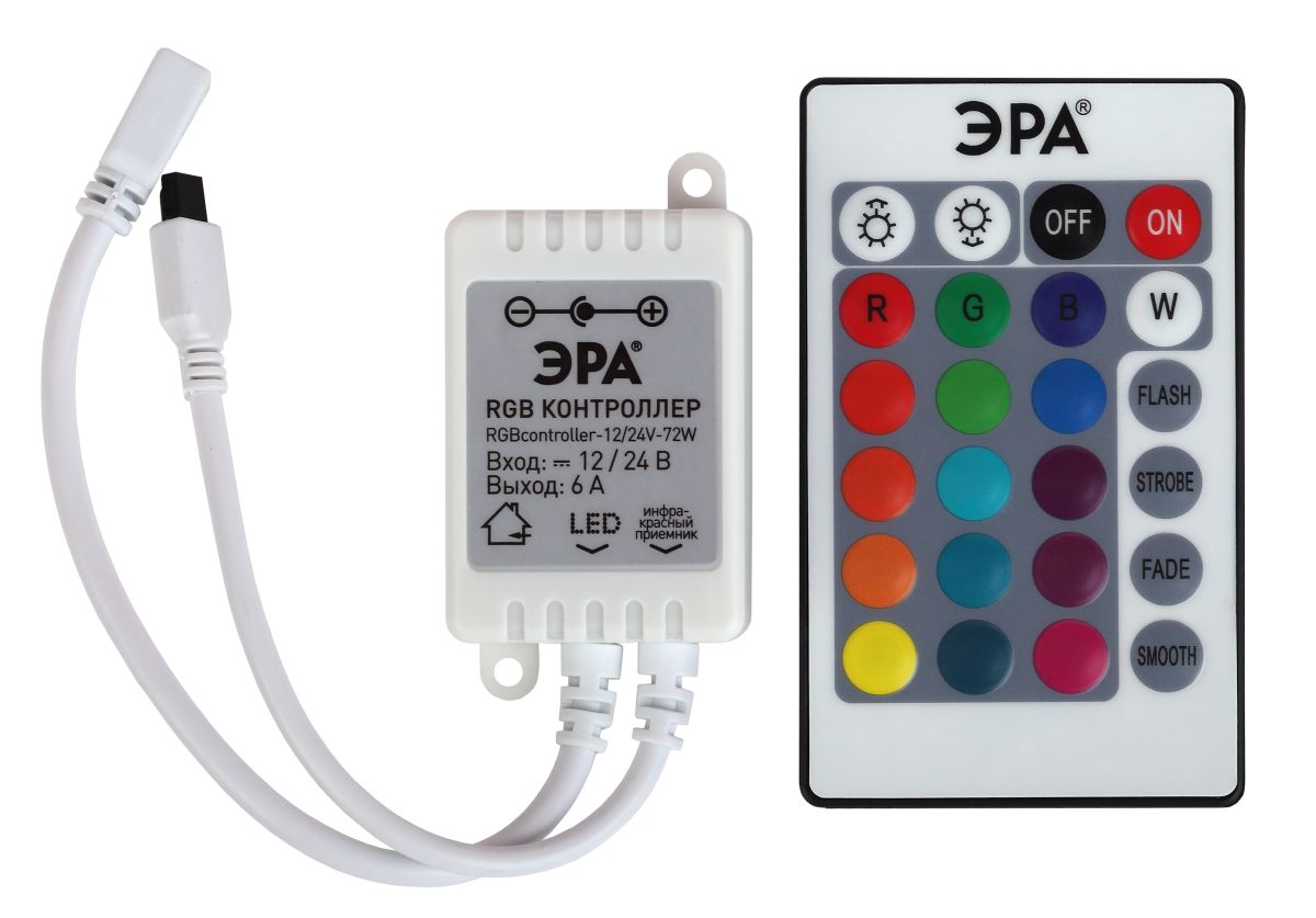 Контроллер ЭРА мини для светодиодной ленты с ИК пультом RGBController-12/24V-72/144W-IP20-IR