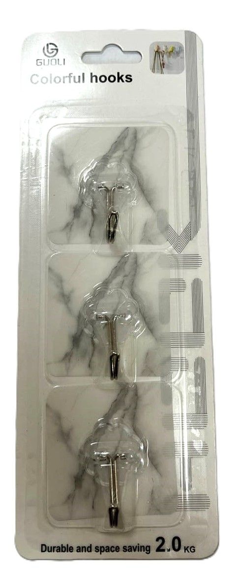 Читать все статьиКрючки самоклеющиеся набор 3шт квадратныес мрамор GUOLI 601