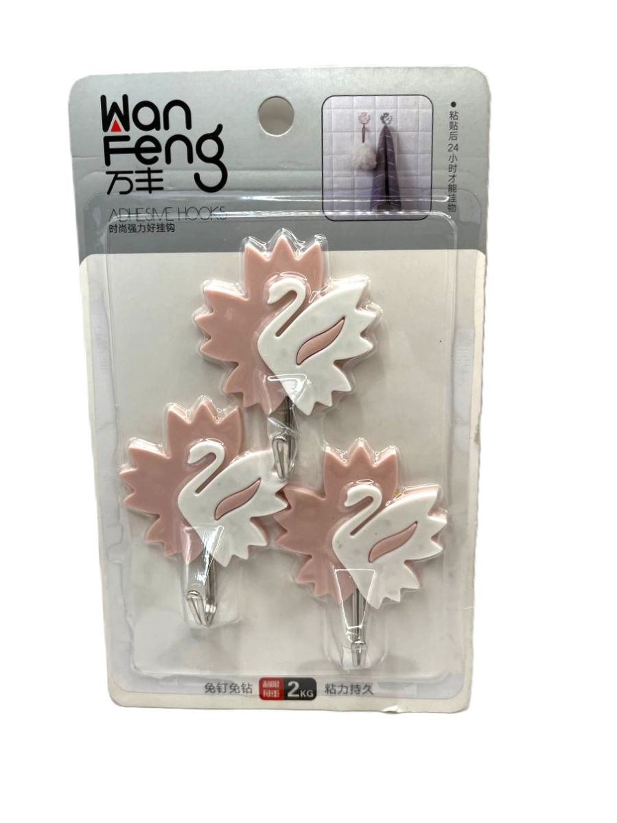 Крючки самоклеющиеся пластиковые набор 3шт Wan Feng Лебедь