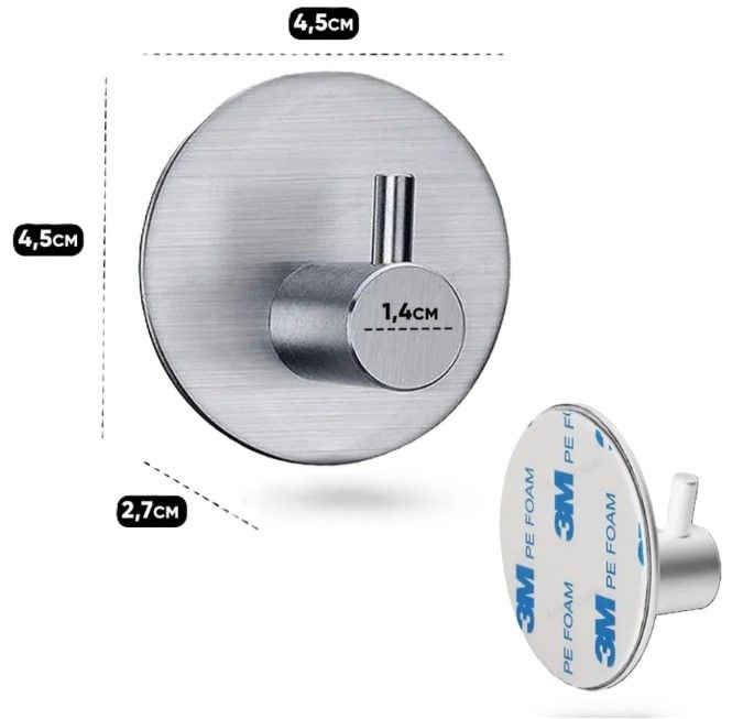 Крючок настенный самоклеящийся Ø 4,5см, до 25 кг, матовая нержавеющая сталь