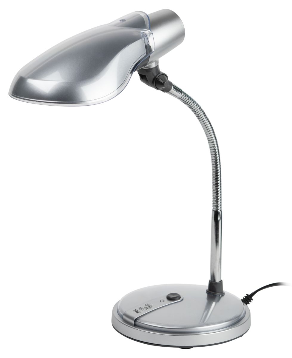 Светильник предназначен для использования с компактной люминесцентной лампой (КЛЛ), которая обеспечивает экономию электроэнергии до 70%. Максимальная мощность лампы мощность 15W, максимальный диаметр 42 мм, цоколь E27. Устойчивое металлическое основание. Выключатель на основании светильника. Современный дизайн, яркие цвета. Лампа в комплект не входит. Направление света регулируется несколькими способами для максимального комфорта: гибкая стойка наклоняется в любую сторону; регулируется наклон плафона, его положение фиксируется с помощью винта; направления света регулируется вращением плафона вокруг основания с цоколем.