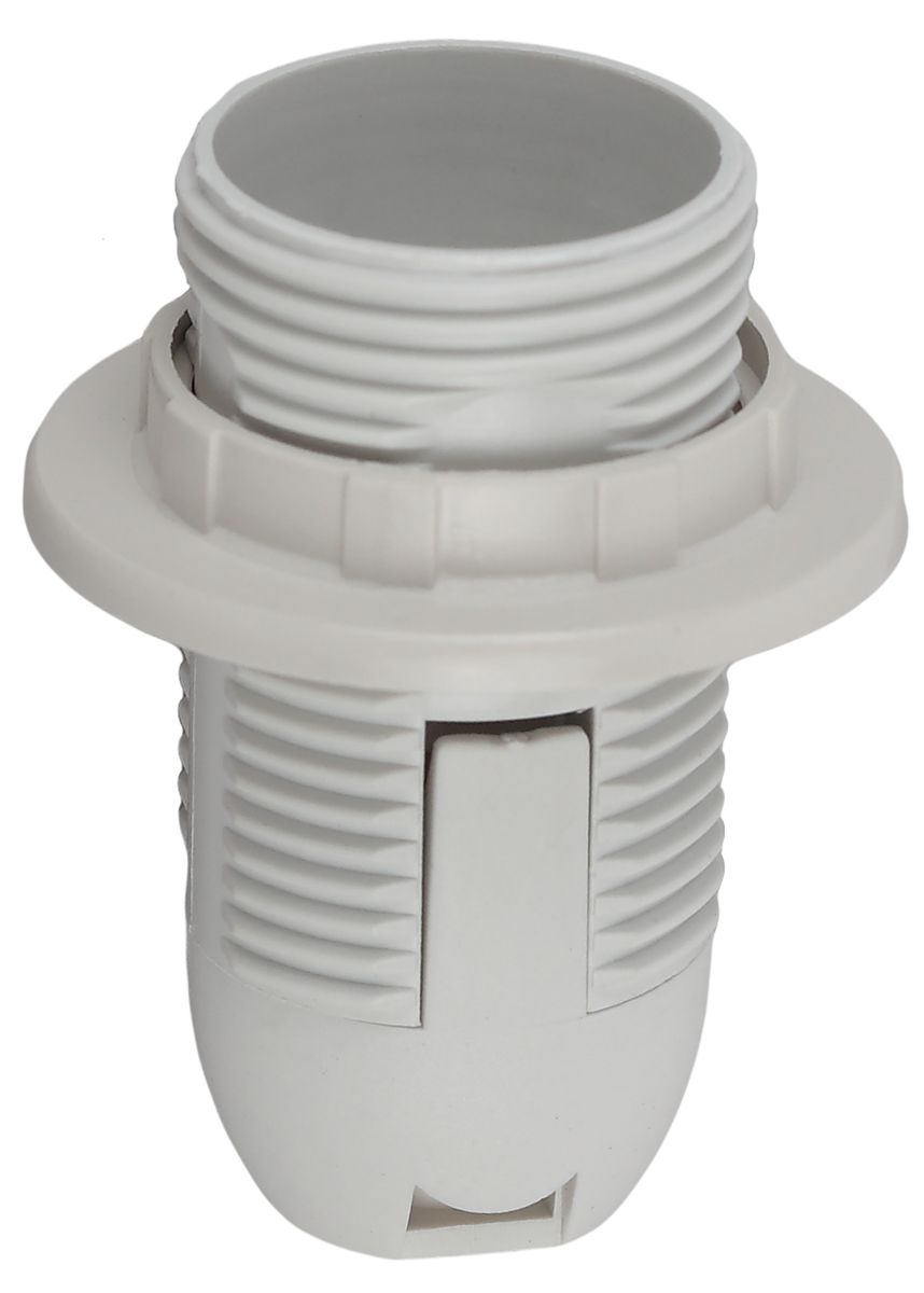 патрон с кольцом изготавливается из термостойкого пластика, материал химически устойчивый к агрессивным средам, обладает высокой прочностью и теплостойкостью; не обладает способностью выдерживать высокие температуры нагрева, поэтому его чаще всего используют для ламп накаливания мощностью не более 60 Вт