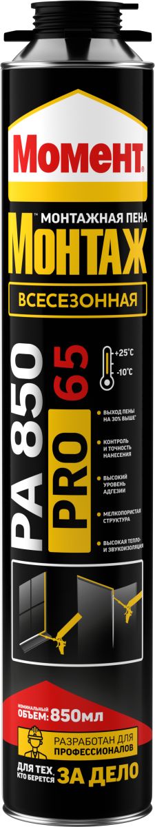 Читать все статьиПена монтажная Момент 3048221 PRO 65 PА850 всесезонная 850мл