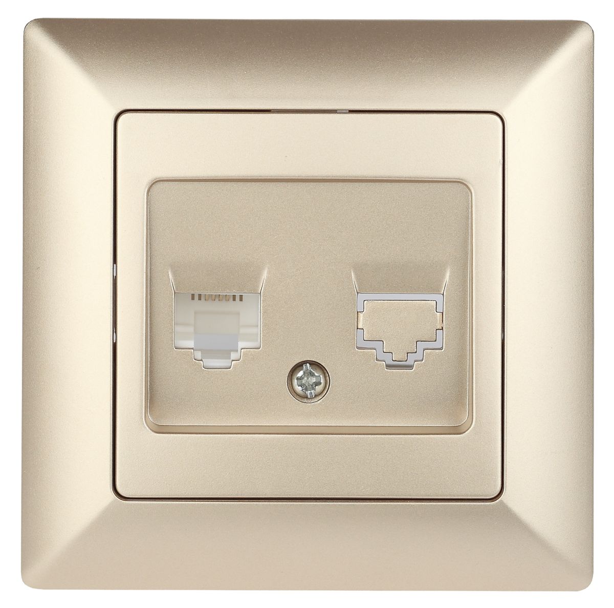 Читать все статьиРозетка Intro Solo 4-302-04 телефонная RJ11, СУ, шампань