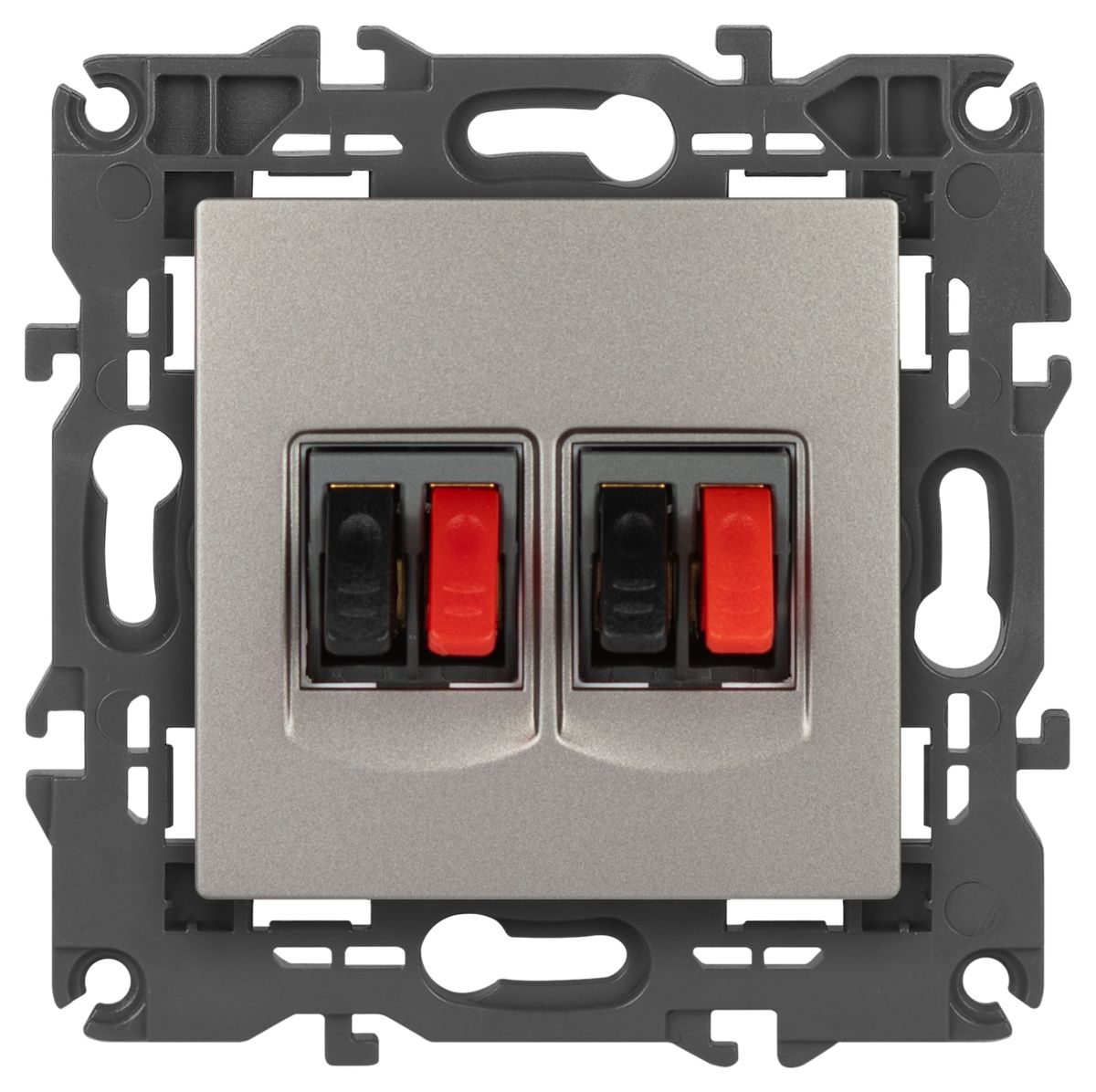 Розетка двойная аудио стерео серии Эра Elegance цвет титан 14-3112-16. Рамки приобретаются отдельно.