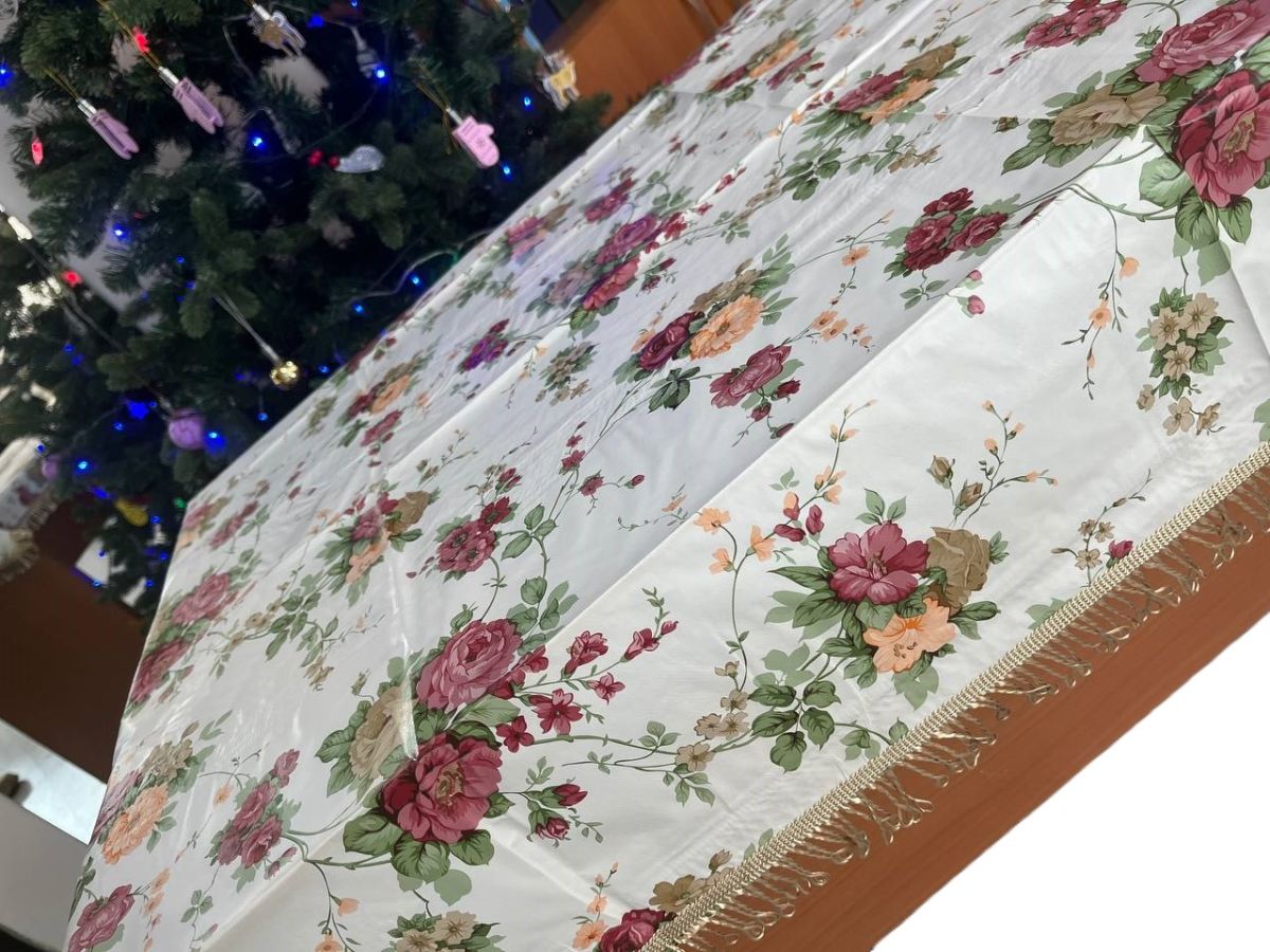 Скатерть-клеенка из пвх с бахромой 110*140см РОЗЫ