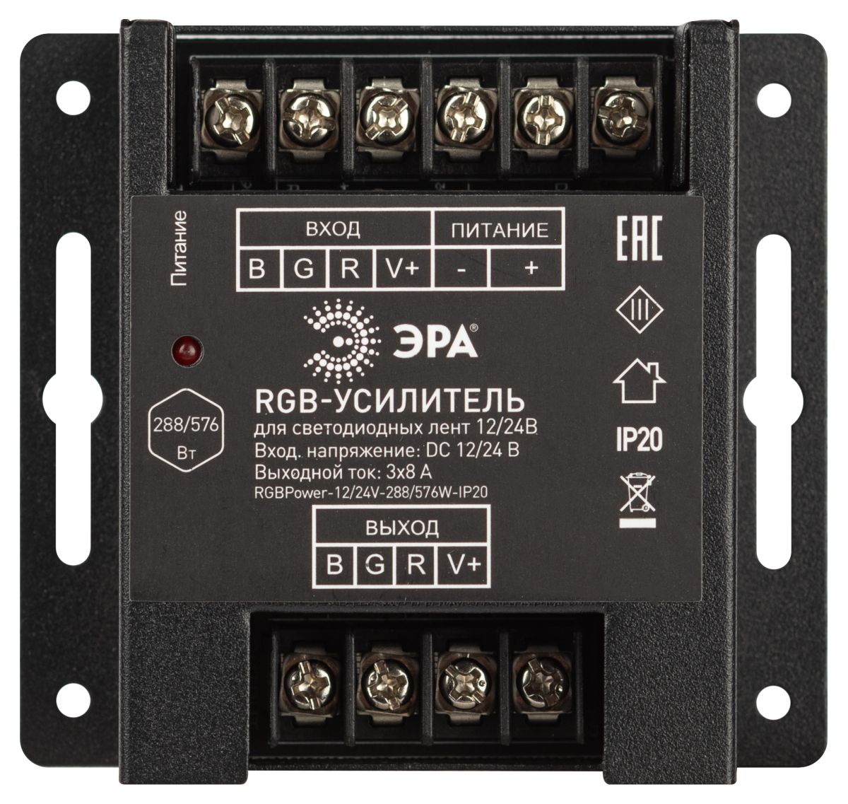 Читать все статьиУсилитель сигнала ЭРА RGBPower -12/24V-288/576W-IP20