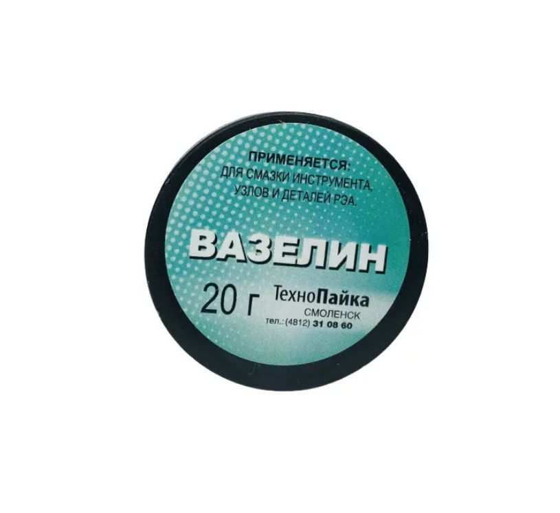 Мазеподобная бесцветная жидкость. Вазелин используется в электротехнической промышленности для защиты металлов от коррозии. Фасуется в пластиковые баночки. Масса нетто: 20гр. Упакован по 10шт