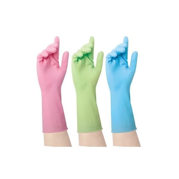 Виниловые перчатки ПВХ хозяйственные (3 цвета в одной коробке) М, 2 шт. Komfi Арт PVHCLR2 12/72